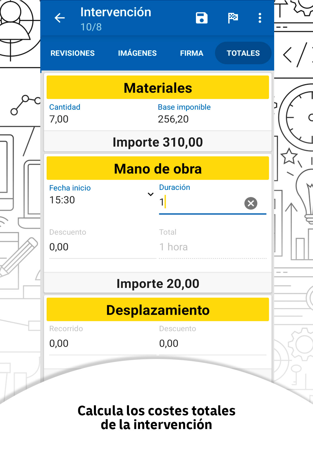 Calcula fácilmente los costes totales de cada intervención. Obtén un desglose claro y preciso, optimizando la gestión de recursos y mejorando la rentabilidad de tu servicio técnico.