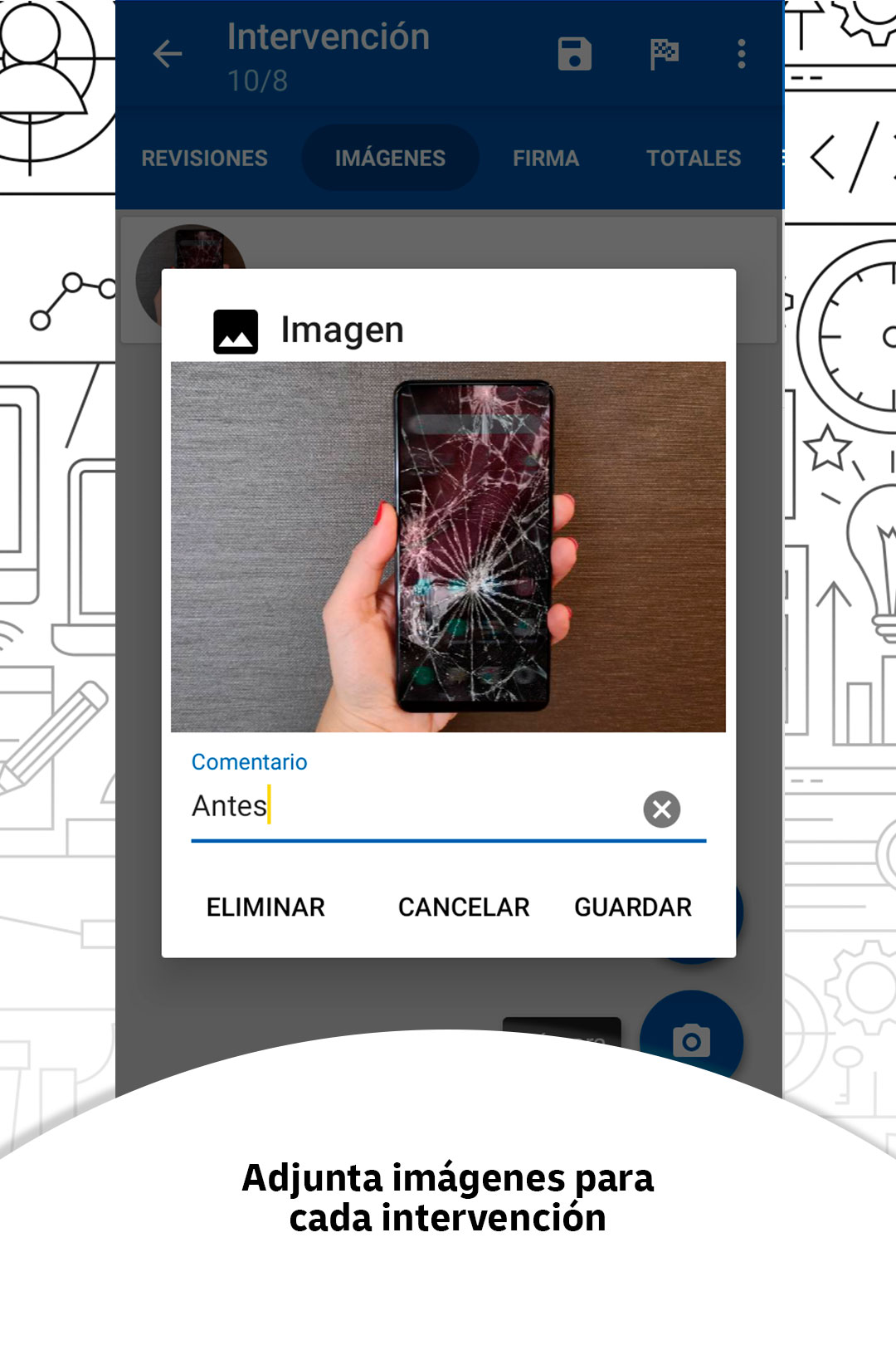Adjunta imágenes a cada intervención para documentar de manera detallada cada acción realizada. Facilita el seguimiento y asegura un registro visual claro de todos los servicios prestados.