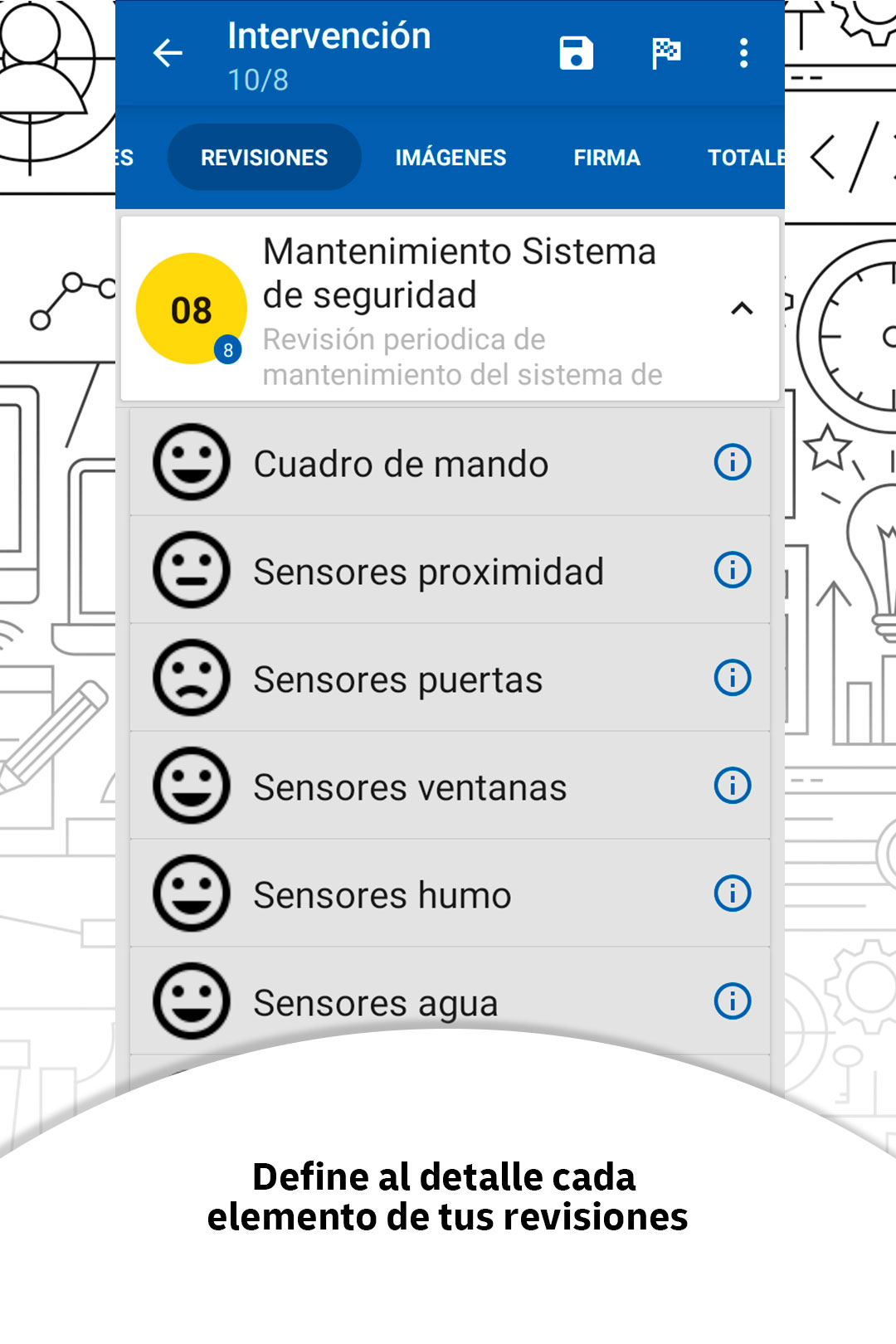 Define al detalle cada elemento de tus revisiones. Personaliza y organiza los pasos y componentes de cada intervención para una gestión más precisa y eficiente.