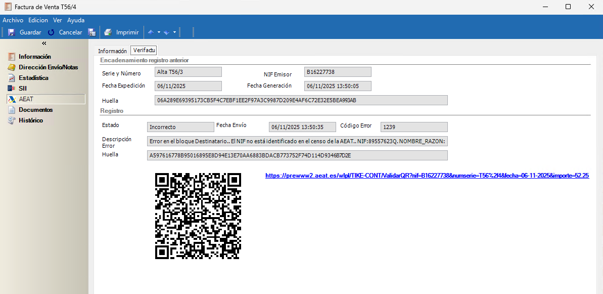 Si la factura es correcta, el servicio de Windows la envía automáticamente a la Agencia Tributaria para su registro en el sistema VERI*FACTU.