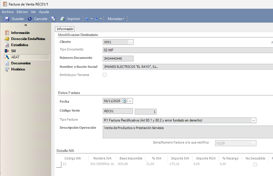 Si una factura ya emitida y aceptada por la AEAT contiene errores en sus importes, tipos impositivos o cantidades, no puede ser modificada.